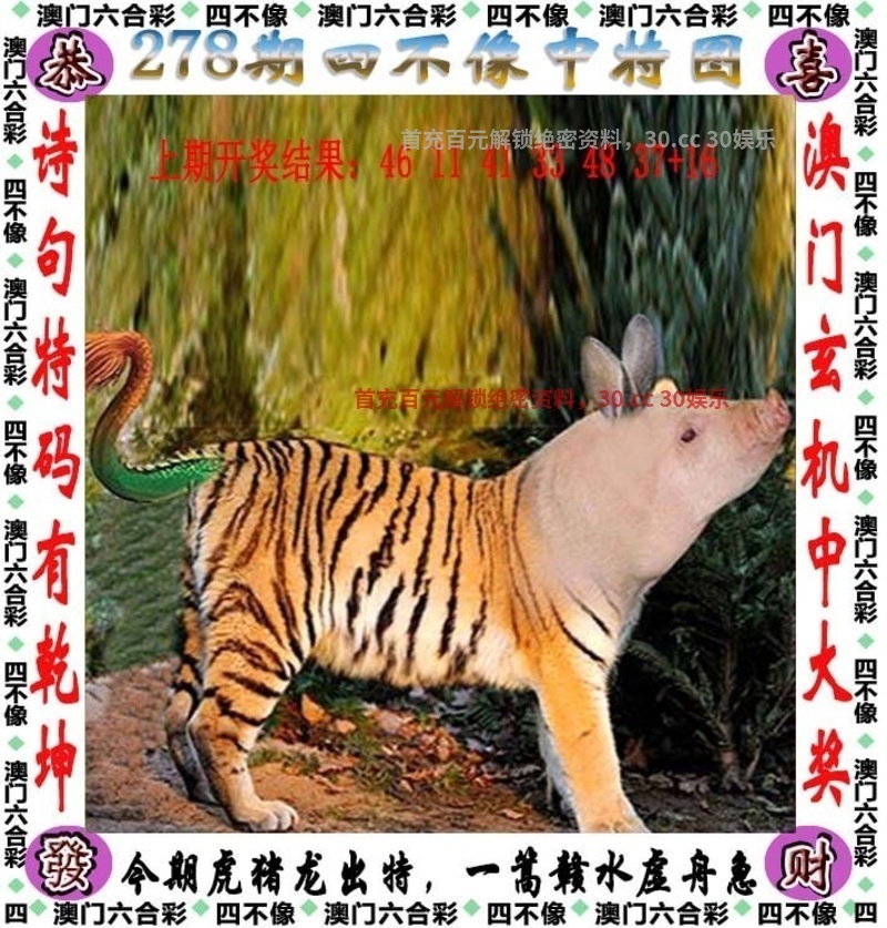 278期今期虎猪龙出特,一篙赣水虚舟急【开:虎28