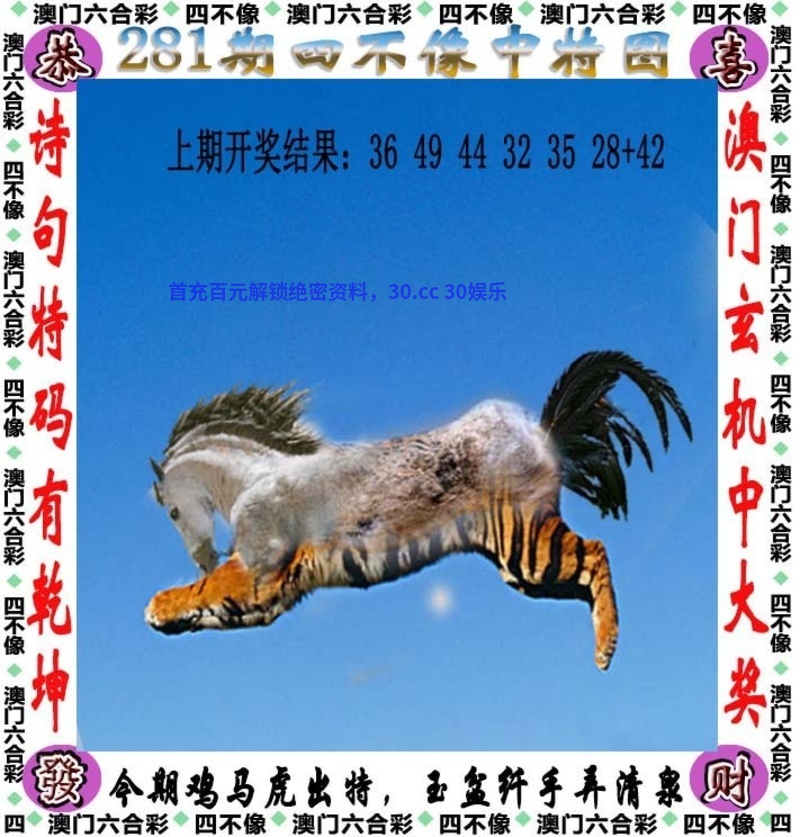 281期今期鸡马虎出特,玉盆纤手弄清泉【开:羊47